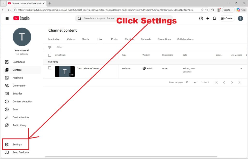 - Go to https://www.youtube.com in any browser and navigate to your YouTube Studio.