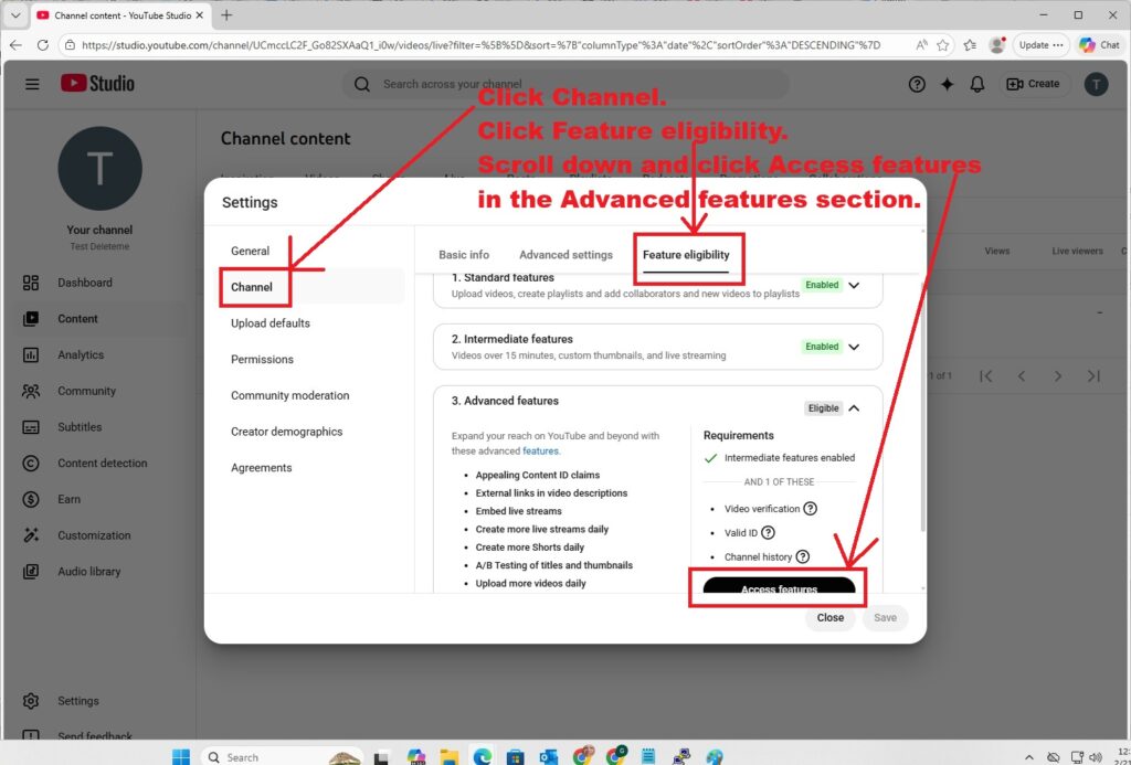 - Scroll to the Advanced Features section at the bottom and click the the "Access features" button.